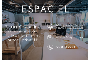 Situé stratégiquement à Saint-Raphaël, Espaciel est facilement accessible et entouré de toutes les commodités nécessaires, rendant l'expérience aussi pratique qu'agréable pour tous les utilisateurs. Que vous organisiez un événement, une formation ou que vous ayez besoin d'un espace de travail dédié, Espaciel à Saint-Raphaël est votre solution idéale pour la location de bureaux et de salles. ☀️